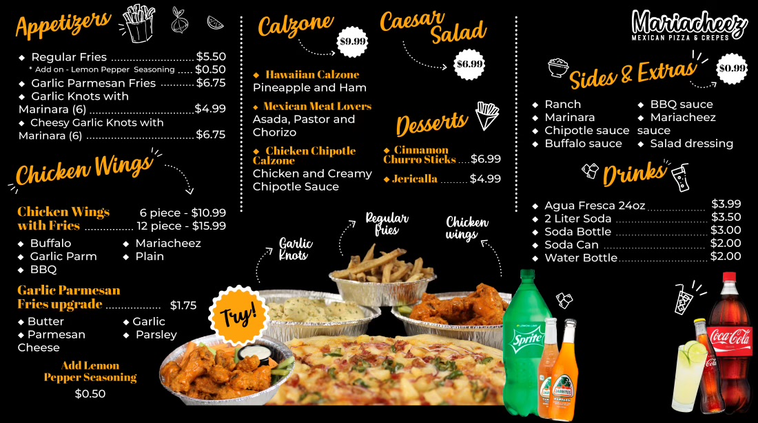 Mariacheez Menu is the kind of lineup that makes you instantly hungry, even before you walk through the doors at 4800 E Bonanza Rd STE 7 in Las Vegas. It’s packed with comforting favorites, from cheesy classics to generous plates that feel like a treat after a long day. The dishes lean into bold flavors, and you can tell each one is meant to be enjoyed slowly, whether you’re settling in with friends or grabbing a quick bite.